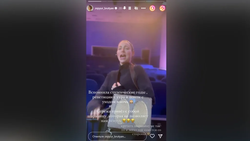 В личном блоге звезда опубликовала видео с репетиции театральной постановки. На кадрах Зепюр веселилась и танцевала. Также компанию ей составил и ее коллеги по цеху.
