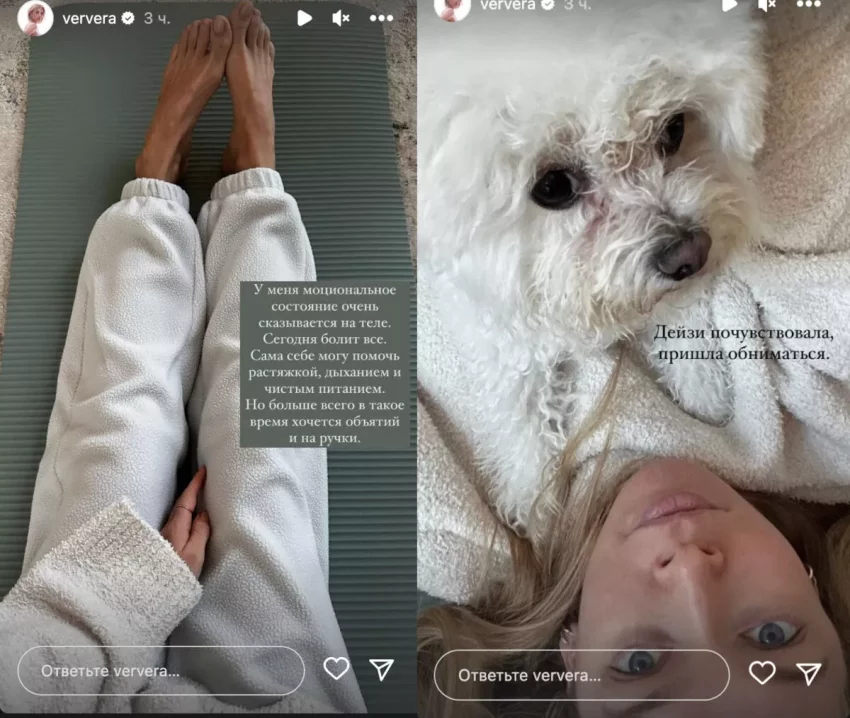«Очень много вопросов внутри, которые так и останутся без ответов. Снова эмоциональный спад. В такие моменты очень нужна опора. Сейчас, как никогда, чувствую ее в любви. Это то, что согревает, сохраняет смыслы… Но больше всего в такое время хочется объятий и на ручки», — написала артистка в своих соцсетях.