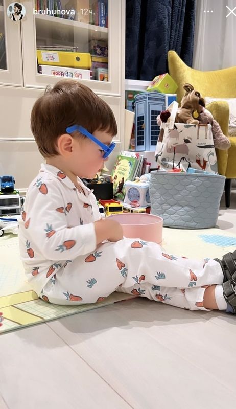 На днях девушка выложила в соцсетях новый снимок ребенка. Однако по традиции не стала показывать его лицо. Судя по фото, мальчик был увлечен чем-то важным в своей игровой. Смешной образ делового малыша дополнили домашняя пижама, очки и сандалии.