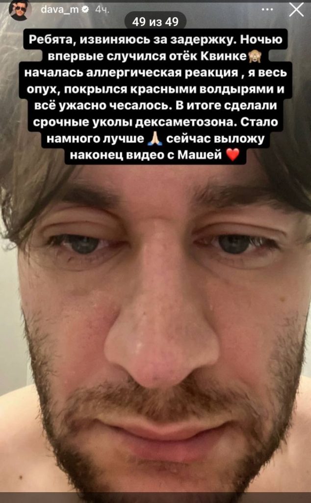 Из-за аллергической реакции, которая сопровождалась опуханием и появлением красных волдырей, блогеру оперативно сделали уколы дексаметозона. Чем вызвана такая реакция организма, не сообщается. Но главное, что опасность позади.