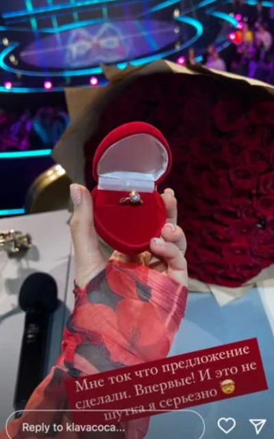 В своих соцсетях звезда сделала громкое заявление. Она рассказала, что какой-то молодой человек сделал ей неожиданный сюрприз в виде помолвочного кольца. Однако личность его Клава решила пока не раскрывать, зато похвасталась снимком презента.
