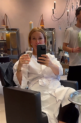 В ролике певица распивала шампанское в одном из столичных салонов красоты после процедуры покраски волос.
