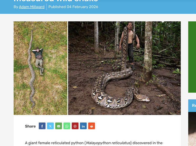 Самую длинную змею в мире измерили, взвесили и сфотографировали