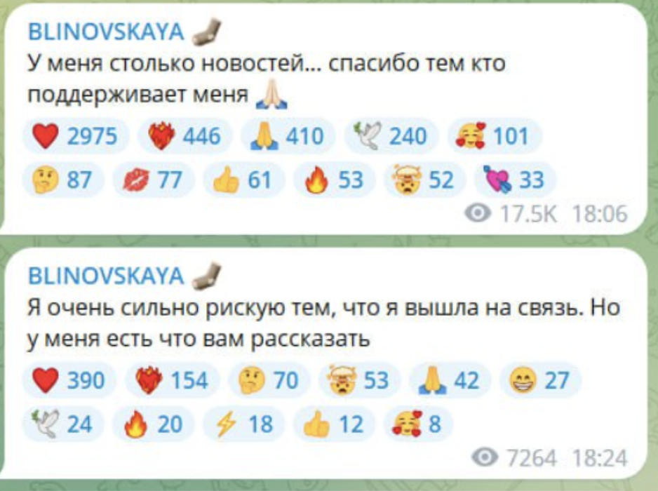 В частности, в ее Телеграме появилась ссылка на недавно созданный канал, на который уже подписались 6 тыс человек. Вполне вероятно, что далее мошенники будут вымогать деньги с подписчиков Блиновской.