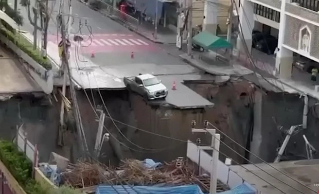 В Бангкоке, столице Таиланда, произошло серьезное происшествие: на одной из улиц после прорыва подземной трубы под землю ушла часть дороги. Об этом сообщило издание South China Morning Post.