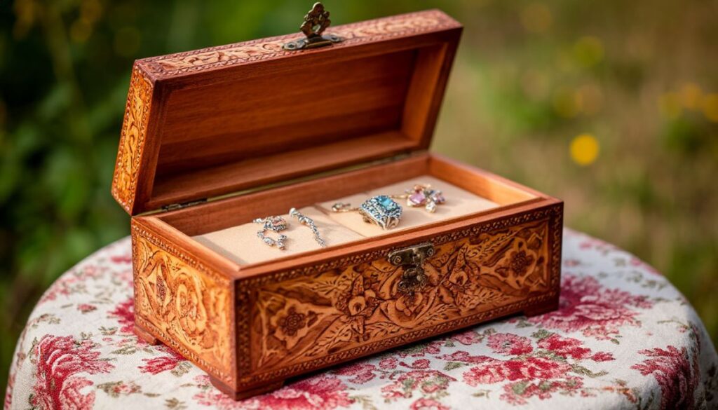 Ручная работа придаёт изделию особую ценность, превращая обычный ящик в произведение искусства. Внутри можно разместить дорогие сердцу мелочи: монеты, марки, значки или редкие статуэтки.