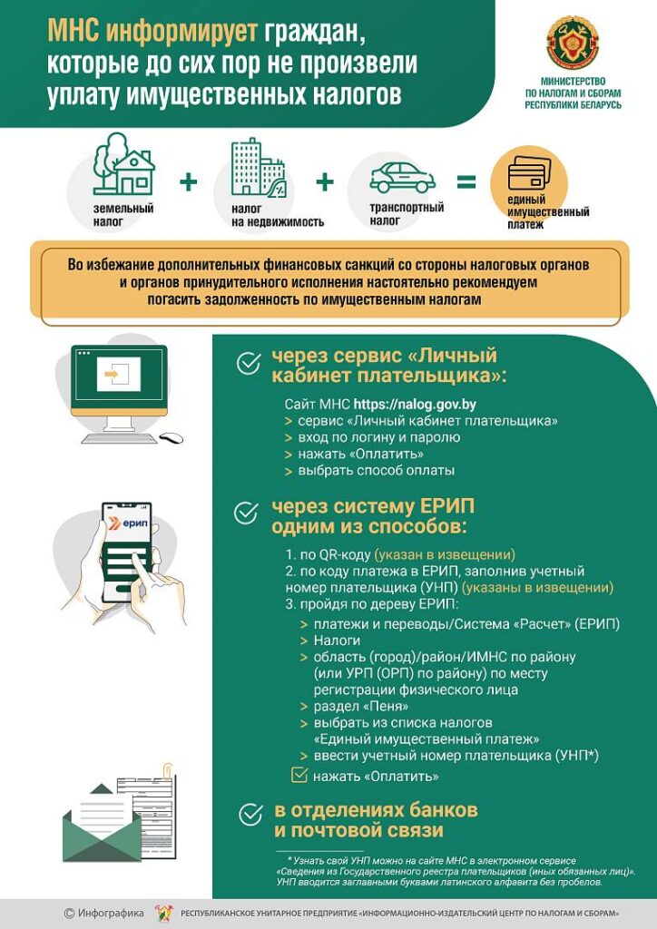 Министерство по налогам и сборам Республики Беларусь информирует граждан о риске дополнительных штрафных санкций при наличии задолженности по имущественным налогам. Информация опубликована на сайте МНС.