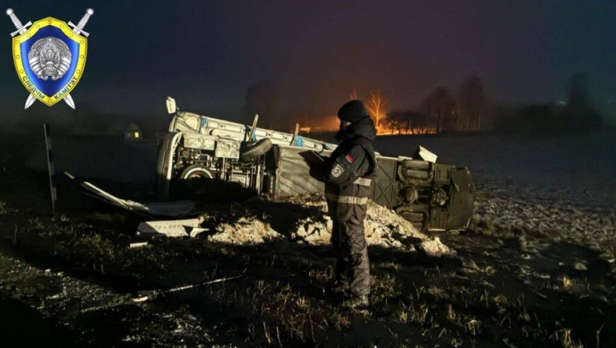 По предварительной информации, 43-летний водитель, двигавшийся со стороны Минска, не справился с управлением, в результате чего автобус съехал в правый по ходу движения кювет и опрокинулся.