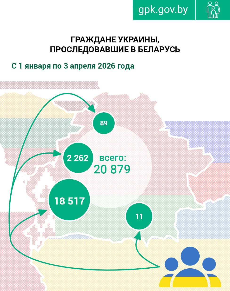 В Госпогранкомитете уточнили, что с начала 2026 года в Беларусь въехали 20 879 граждан Украины.