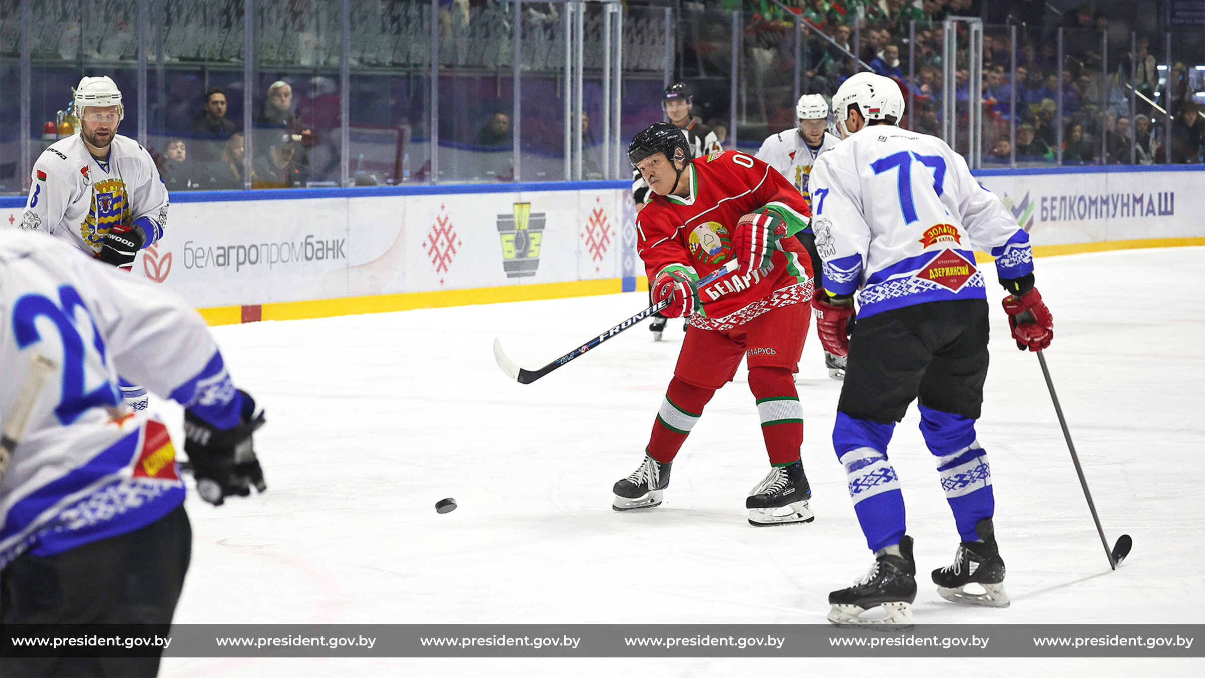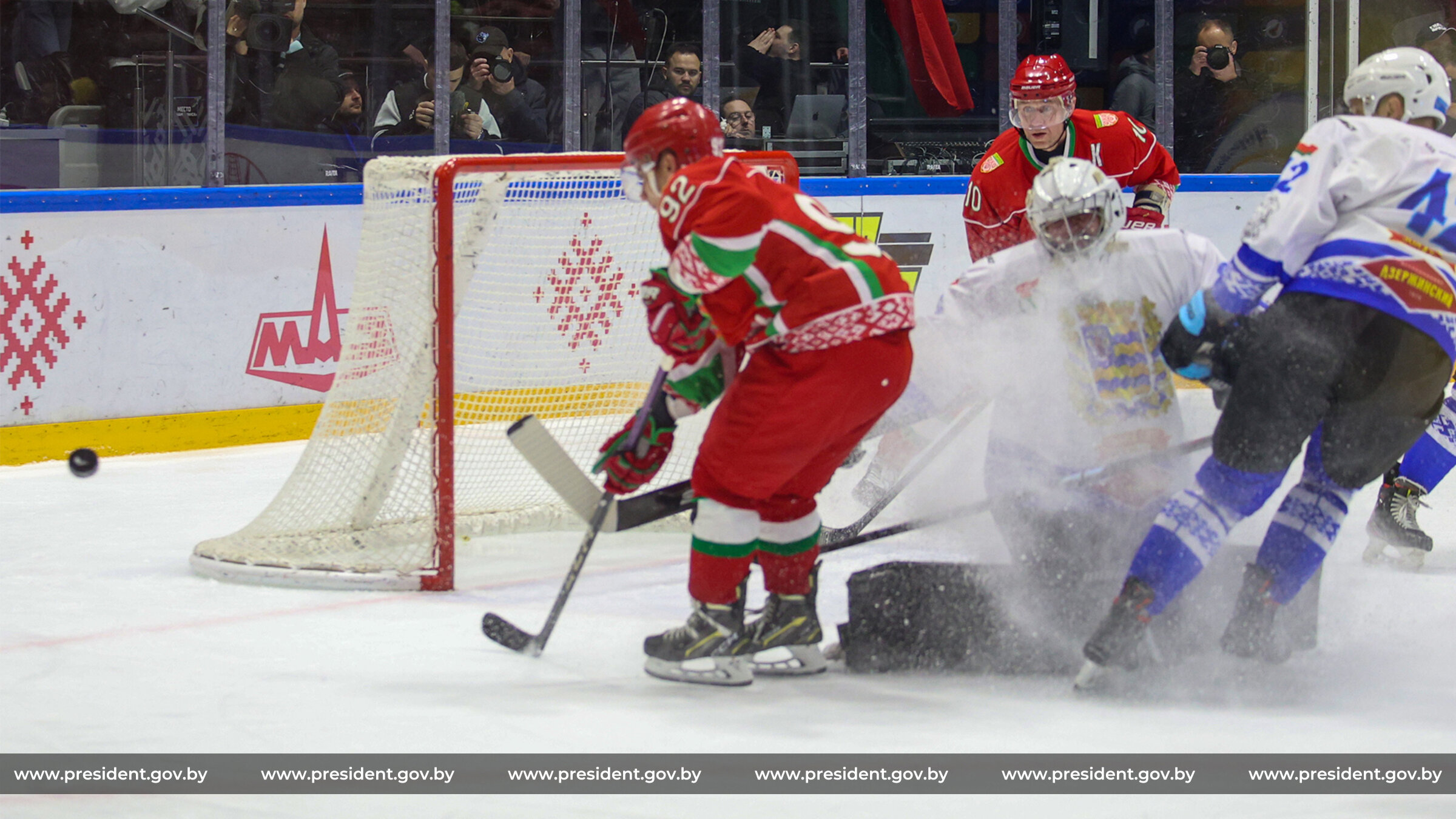 Матч между хоккейной дружиной главы государства и сборной Минской области проходил на льду «Олимпик-Арены». Игроки президентской сборной открыли счет уже в первые минуты игры после точного паса Александра Лукашенко и Ярослава Чуприса, гол забил Андрей Костицын.,