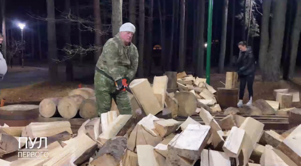 «А как вы думаете, остался ли президент в стороне от этого занятия? Конечно же, нет! Вечером он также рубил дрова, выражая тем самым солидарность с 3,5 тысячами участников и зрителей Чемпионата по колке дров!» — говорится в сообщении Пула.