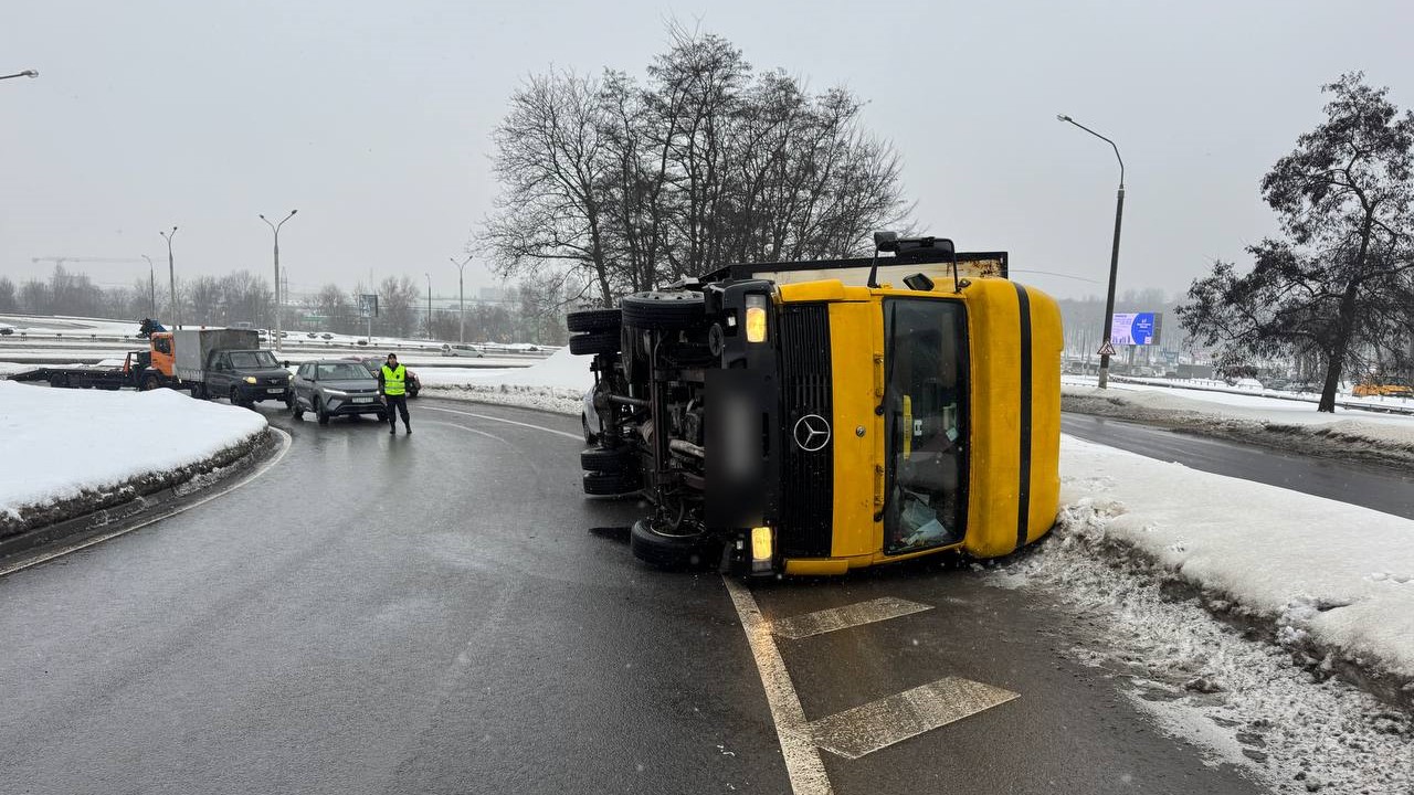 По данным ГАИ, 25-летний водитель, двигаясь по проспекту, при подъеме на внутреннее кольцо МКАД допустил смещение перевозимого груза, что привело к потере устойчивости и опрокидыванию грузовика.