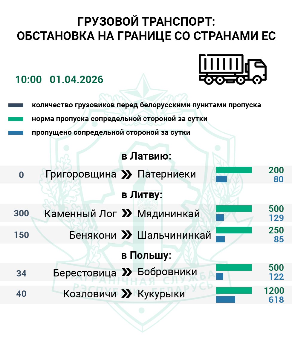 По данным Госпогранкомитета, польские контролирующие органы за сутки приняли на свою территорию только 38% грузовиков от нормы. Это также существенно ниже пропускных возможностей инфраструктуры и, по оценке белорусской стороны, способствует накоплению очередей.