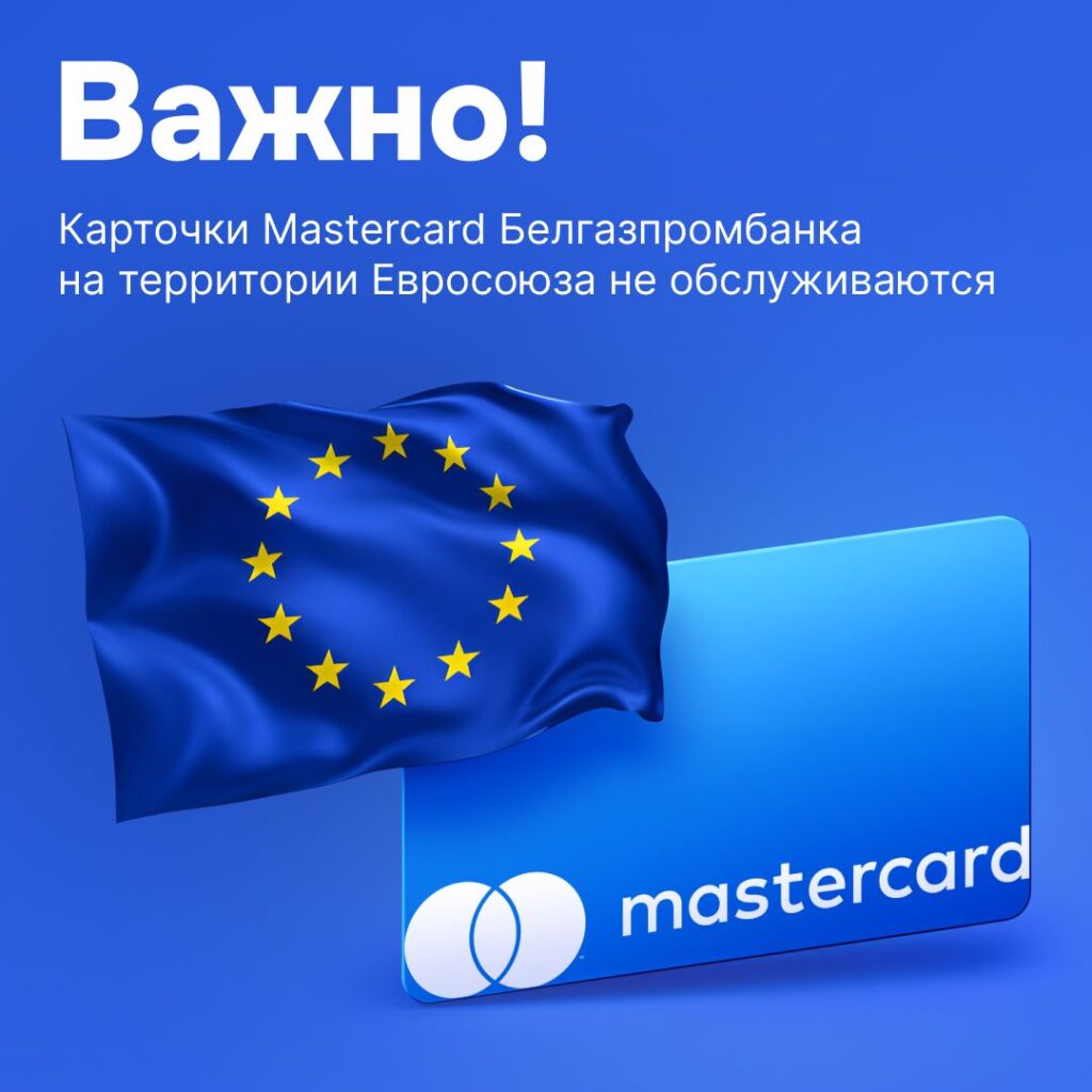 Ограничение распространяется и на интернет‑платежи в онлайн‑сервисах и магазинах, зарегистрированных в юрисдикции ЕС. В Беларуси, а также в других странах за пределами ЕС, карты Mastercard Белгазпромбанка продолжат работать в обычном режиме.