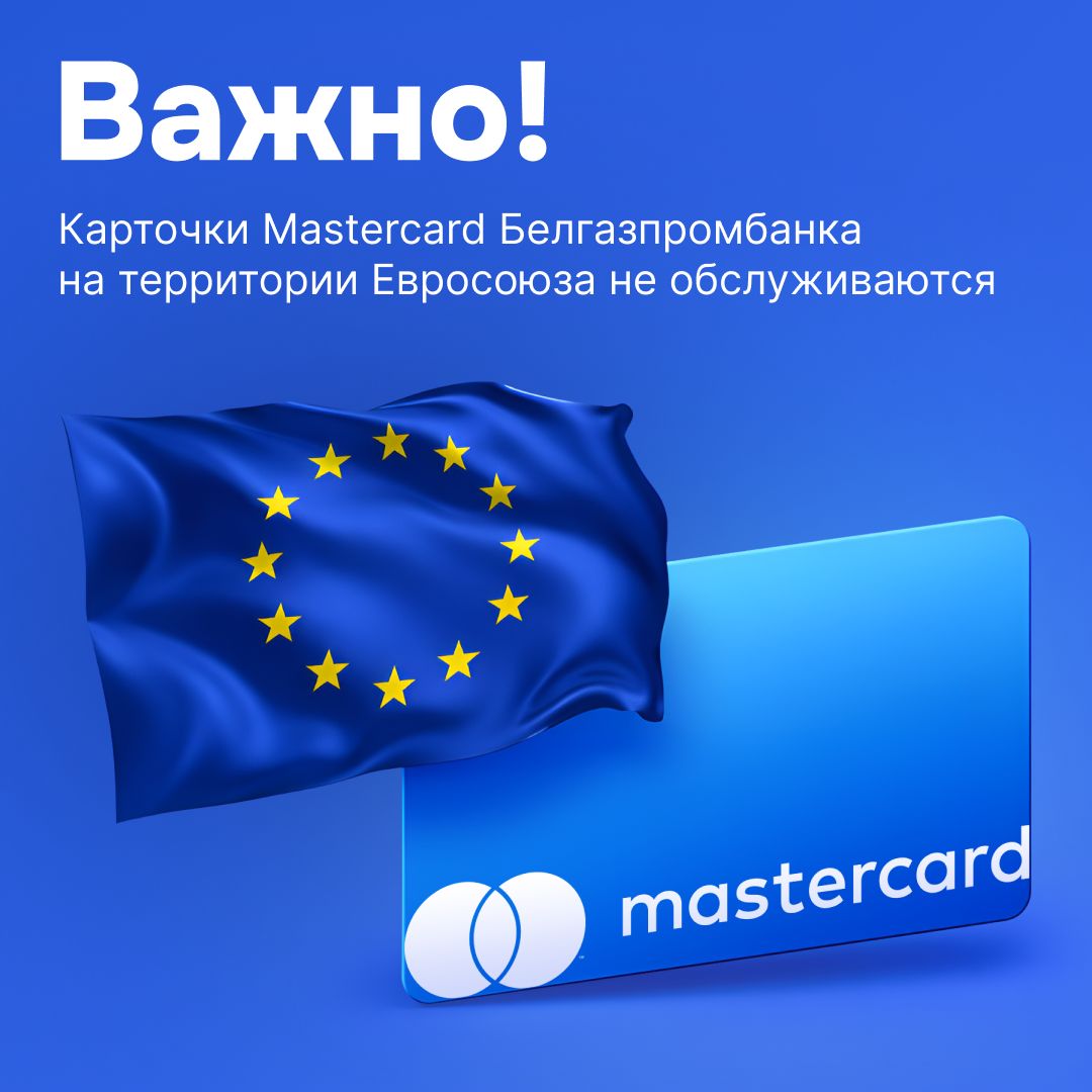 По решению международной платёжной системы Mastercard с 21 апреля 2026 года операции по картам Mastercard Белгазпромбанка будут недоступны на территории стран Евросоюза.