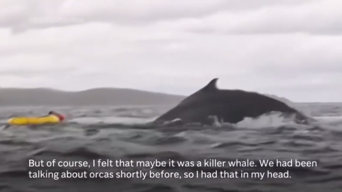 24-летний Адриан Симанкас сначала ощутил сильный толчок в спину, что выбило его из каяка. Вскоре он оказался в слизистой полости кита, где услышал необычные звуки и пережил мощное всасывание. Только когда его резко выбросило на поверхность, он осознал, что произошло.
