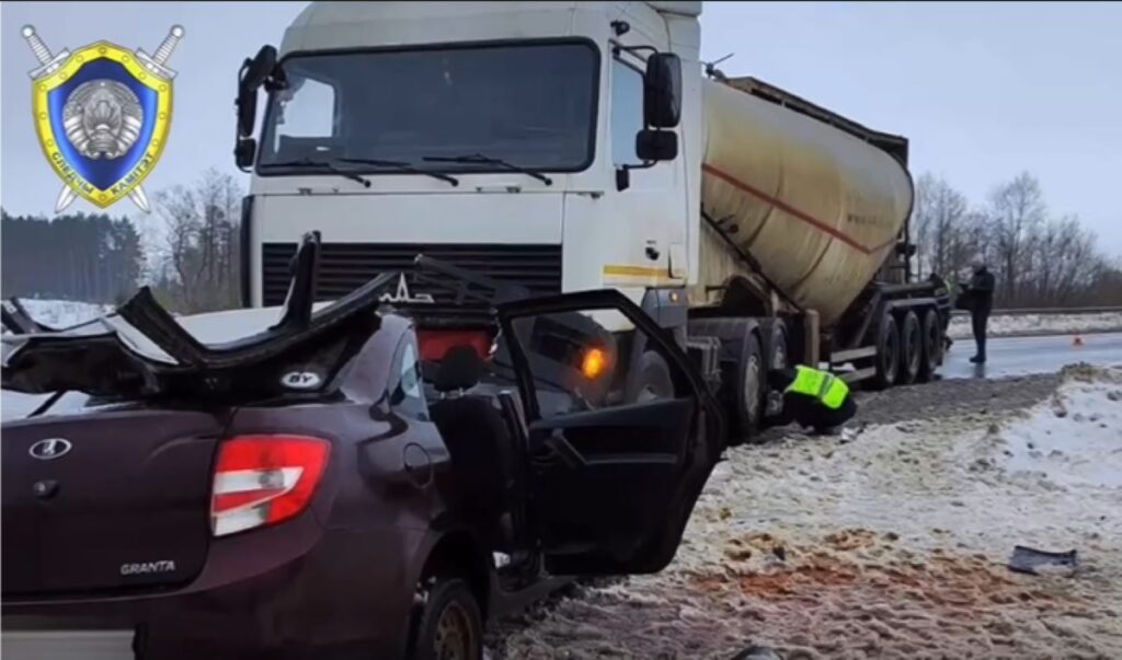 «Предварительно установлено, что водитель МАЗа двигался в направлении местного цементного завода. Со слов водителя большегруза, чтобы избежать столкновения с впереди двигавшейся фурой, он выехал на встречную полосу, где увидел автомобиль Lada, удара с которым избежать не удалось», — уточнили в Следственном комитете РБ.