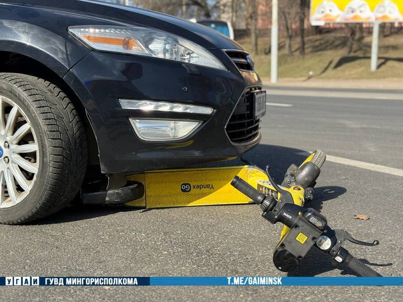 В Минске сегодня, 18 марта, произошел дорожный инцидент с участием автомобиля «Форд» и минчанки, ехавшей на электросамокате.