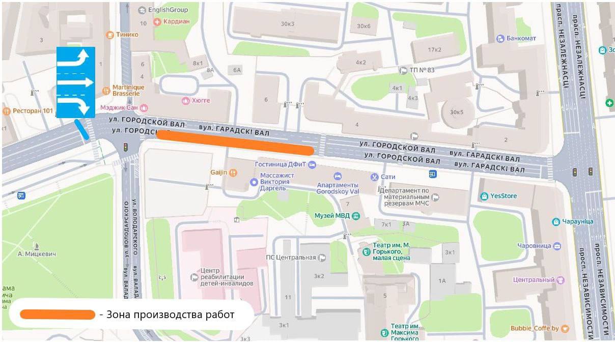 В Минске из-за ремонта газопровода меняется схема движения на улице Городской Вал