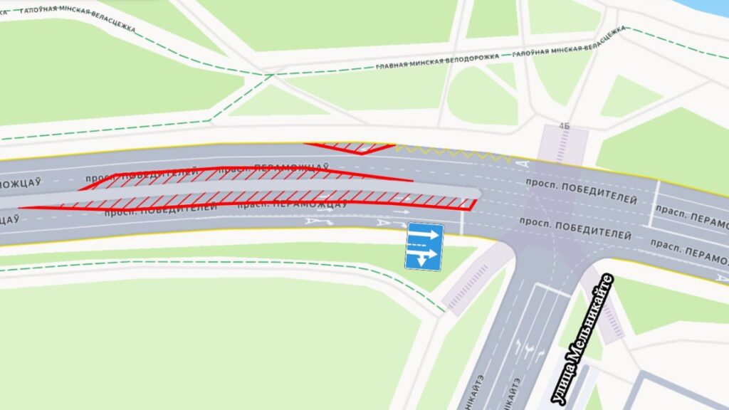Как сообщает Управление Государственной автомобильной инспекции Управления внутренних дел Минского горисполкома, количество полос для движения транспорта в каждом направлении будет сокращено с трех до двух.