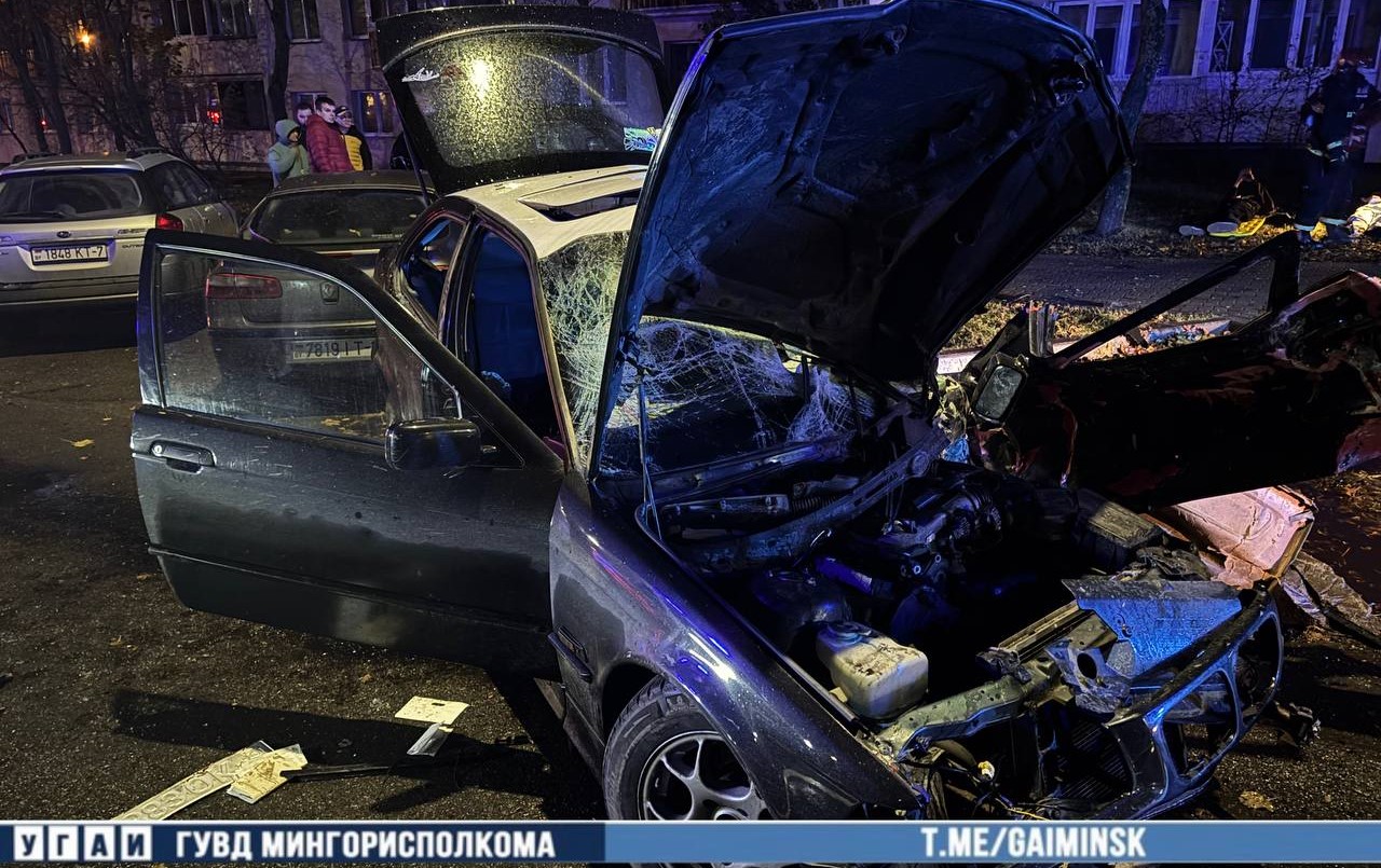 В Минске нетрезвый водитель на BMW без прав врезался в мачту освещения
