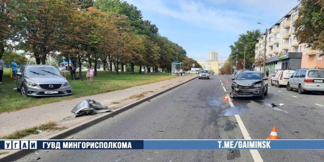 В результате столкновения автомобиль раскрутило и он врезался в бордюр, а затем столкнулся с автомобилем Lada, который двигался со стороны Логойского тракта.