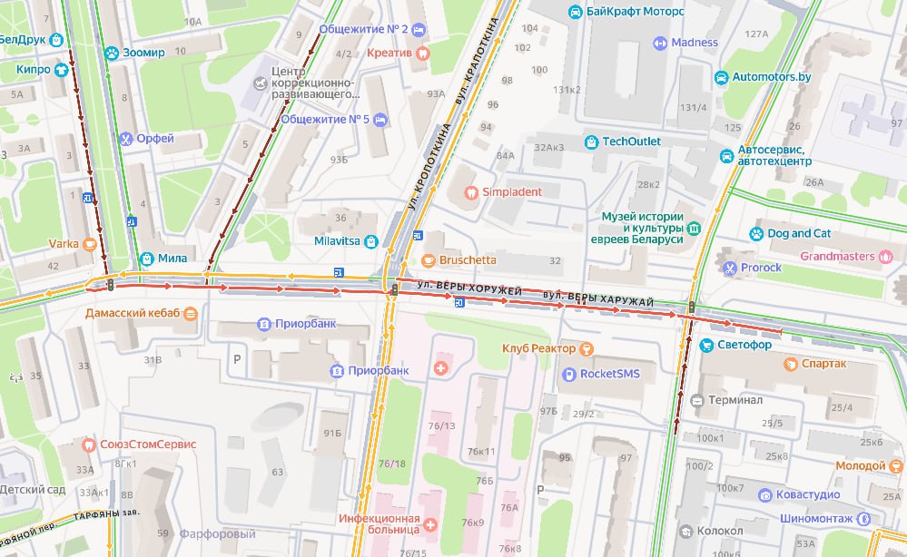 В связи с подтоплением дороги движение всех видов транспорта по улице Веры Хоружей, на участке от бульвара Шевченко до улицы Старовиленской, приостановлено в обоих направлениях.