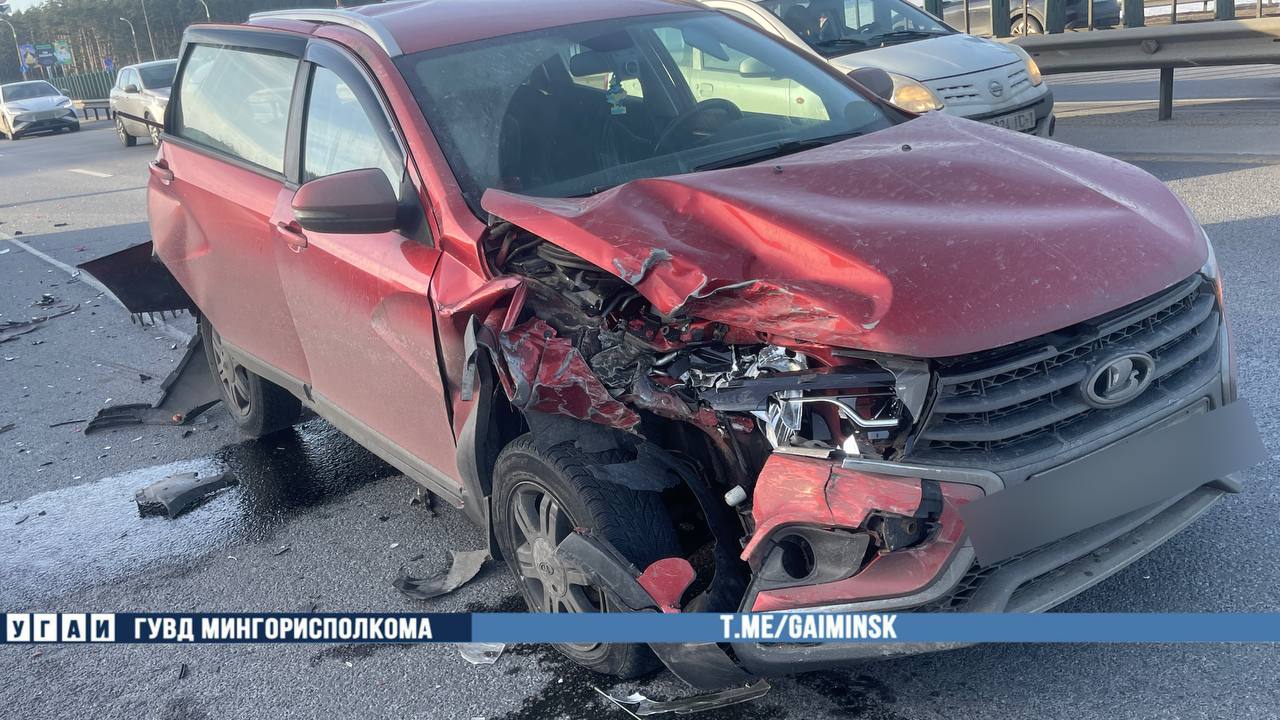 В пятницу, 6 марта, в Минске на внутреннем кольце МКАД произошло массовое ДТП с участием трех легковых автомобилей «Лада», «БМВ» и «Джили».