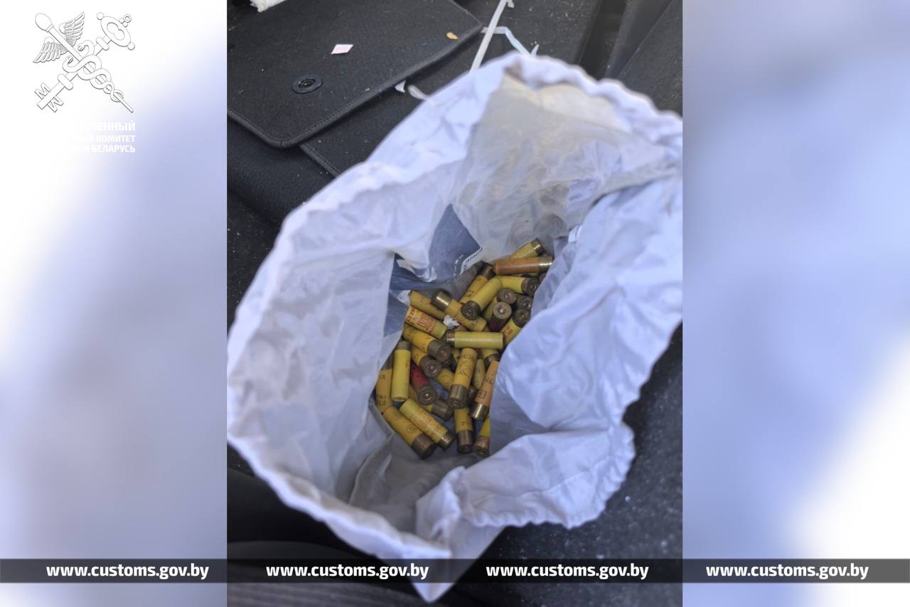 Во время проверки автомобиля Buick Encore кинологи обнаружили в скрытом отсеке багажника белый тканевый мешок. Внутри было 54 патрона, вероятно, предназначенных для гладкоствольного охотничьего оружия. Материалы отправили на исследование в Государственный комитет судебных экспертиз, где установили: это боеприпасы, готовые к использованию.