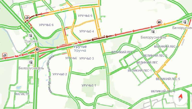 В направлении улицы Калиновского на проспекте Независимости от улицы Рогачевской движение затруднено из-за ДТП вблизи станции метро Борисовский тракт.