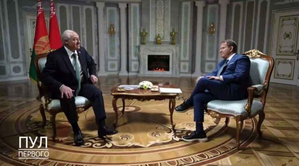 Лукашенко говорил о значении размещённого в Беларуси ядерного оружия как фактора сдерживания, о том, как устроена вертикаль власти, и о своём видении будущего страны, исходя из сохранения суверенитета и курса на «поступательное развитие».