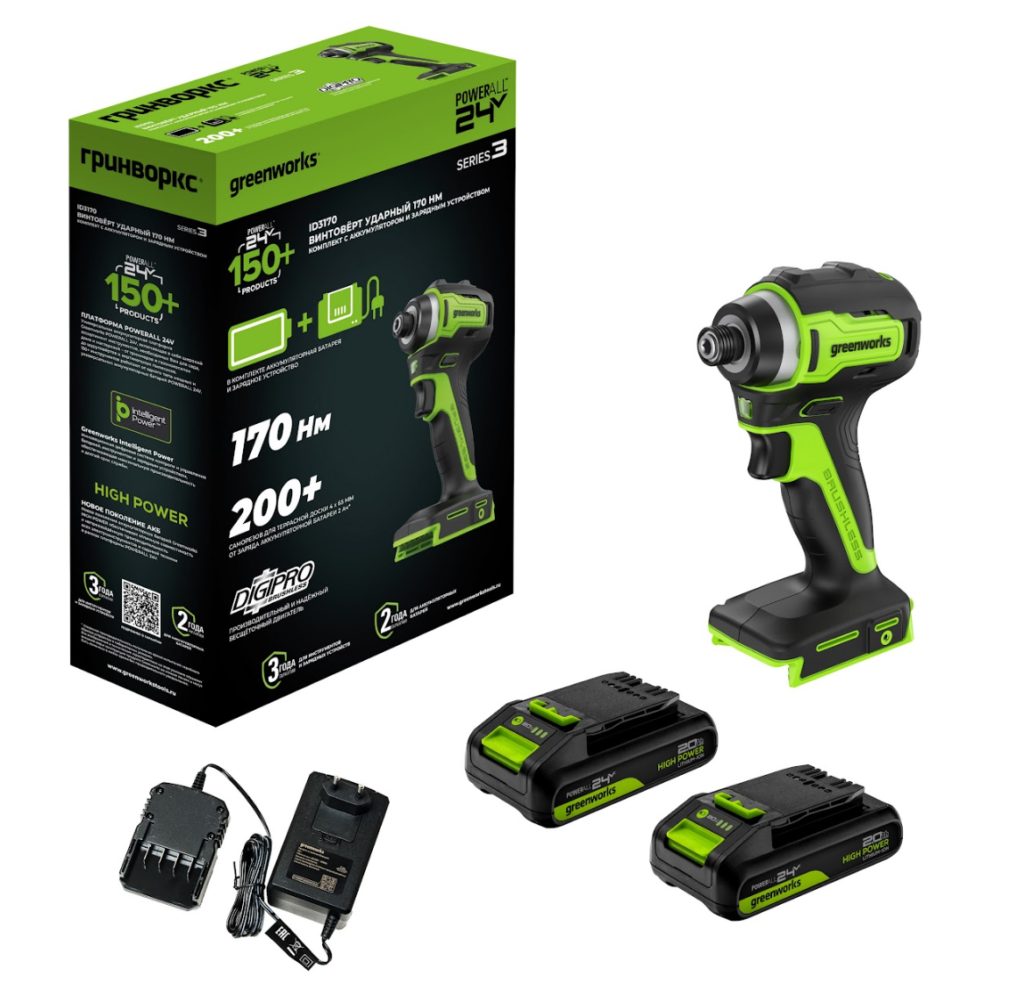 Ультракомпактный ударный винтоверт Greenworks ID3170: мощность и точность для профессионалов