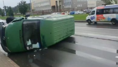 В Минске на улице Ваупшасова перевернулся микроавтобус
